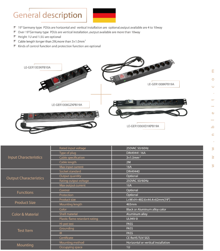- Types of Sockets: 8 x EU (Schuko) DIN49440